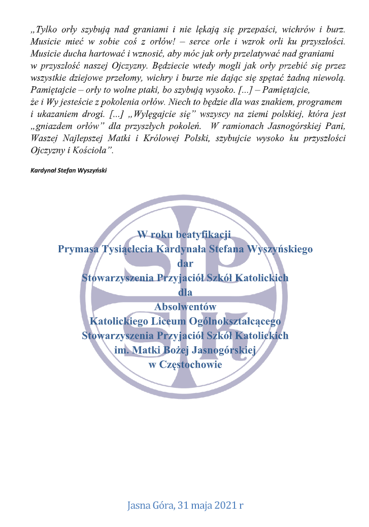 Słowa dla Absolwentów przekazane przez Panią Prezes SPSK Marię Chodkiewicz: